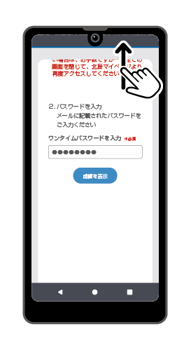 3.「ワンタイムパスワード」がメールで届いたら、「2.」のログイン画面に戻りワンタイムパスワードを入力すると、WEB推移表が表示されます。